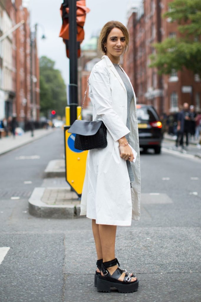 С чем одеть белые босоножки на объемной подошве, чтобы выглядеть женственно? Отличный вариант — выбрать прямые или облегающие джинсы и подобрать нежную блузу в нюдовых или розовых тоннах. Платья длины миди или макси сделают лук необычным и стильным.