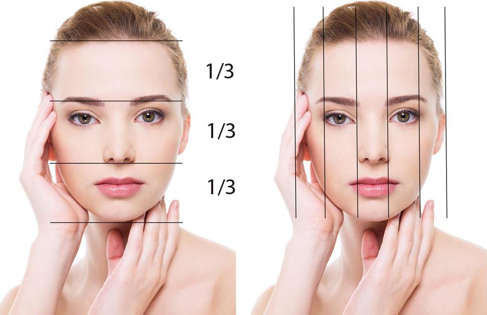 Лицо условно делят на три части. Первая – от линии бровей до начала роста волос. Еще одна – от основания носа до линии бровей. От подбородка до основания носа – третья часть. Эталонный тип установлен благодаря соотнесению их между собой.