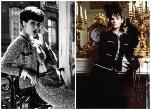 Современные интерпретации этого жакета можно увидеть в каждой коллекции Chanel: могут измениться длина рукавов, форма, силуэт, фактура, появляется необработанный край и оригинальные воротники. Лишь одно остаётся постоянным – жакеты Chanel шьют только из твида.